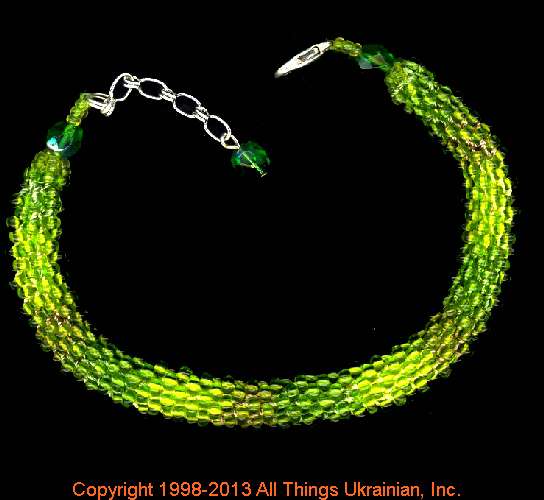 | These pieces are lovingly handmade and designed by artistsans in Ukraine. Based on the Ukrainian artform of Gherdany, each one is a unique and original work of art. They are not intended for sports activity or for very young children. They do not stretch, so it is advised to check the specified lengths. All seed beads are glass unless noted otherwise. |